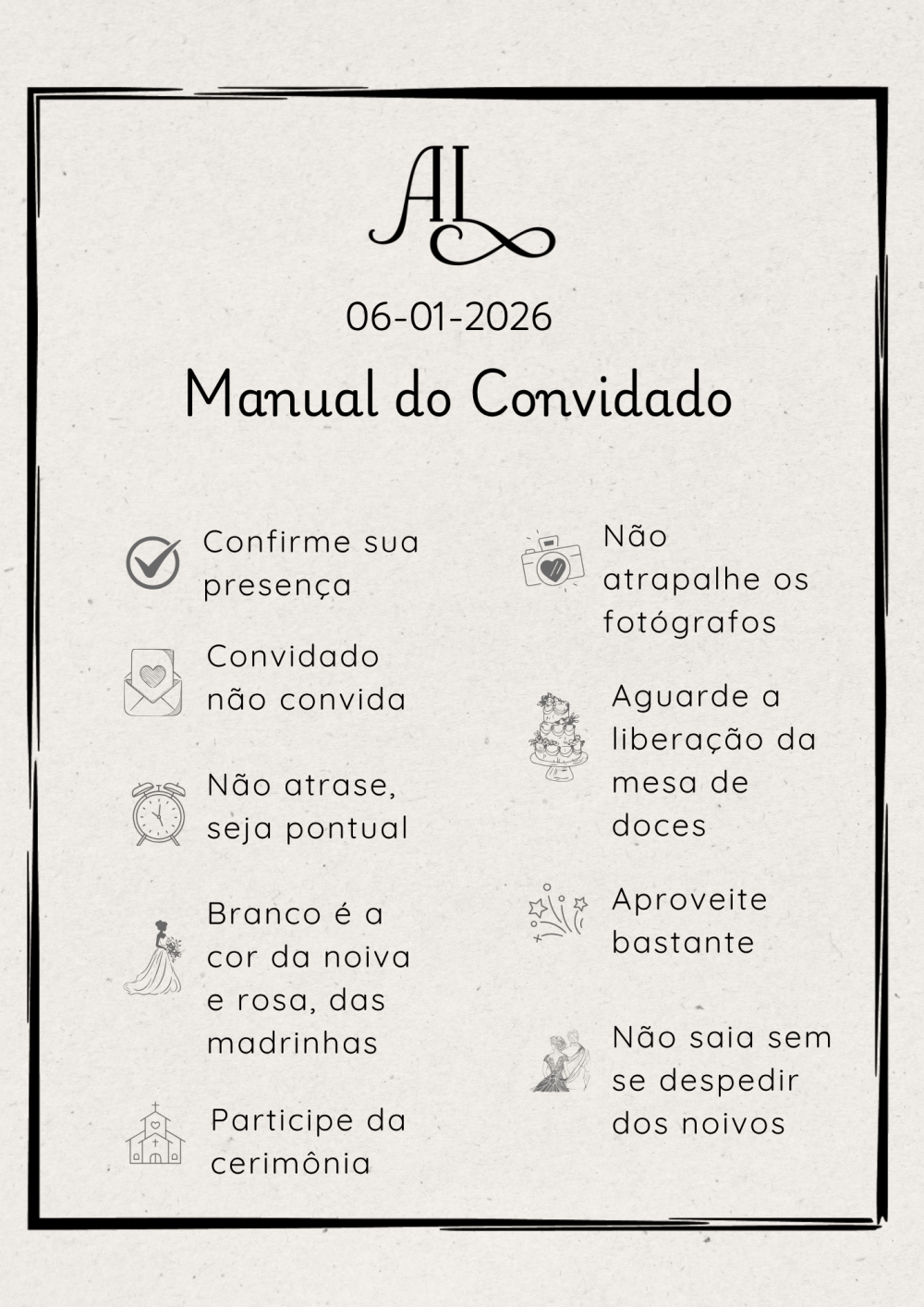 Gostaríamos muito de contar com a presença de todos vocês no momento em que nossa união será abençoada diante de Deus! A cerimônia será breve e tentaremos ser extremamente pontuais. Contamos com vocês! Cerimônia: 08:30 - Paróquia Santa Clara de Assis - R. Amado Bahia - Tomba